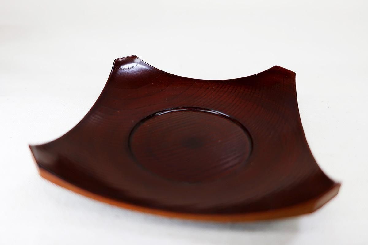 隅切りデザインが美しい茶托。ABS樹脂製で耐久性に優れ、割れにくく色も剥げにくい。家庭用やおもてなしに最適です。