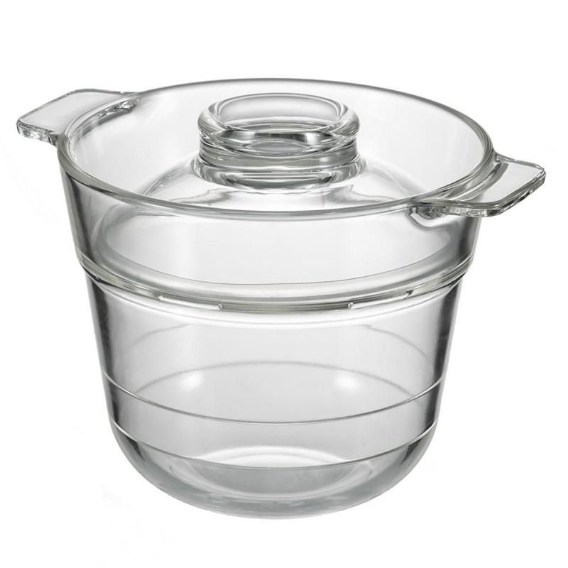 中身が見える耐熱ガラス製の電子レンジ用炊飯器。一度に0.5合〜1合のお米が炊け、匂い移りがしにくいので他の調理にも最適。お手入れも簡単で安心の国産品です。