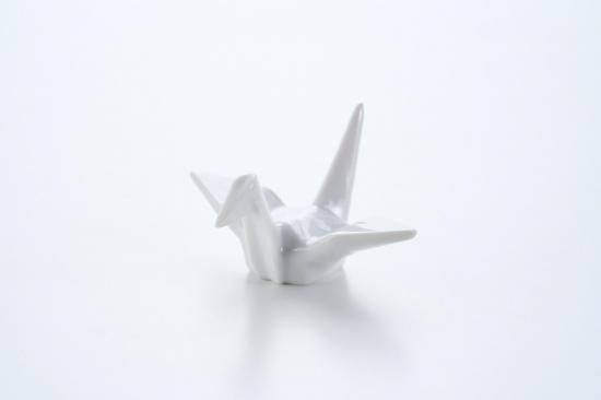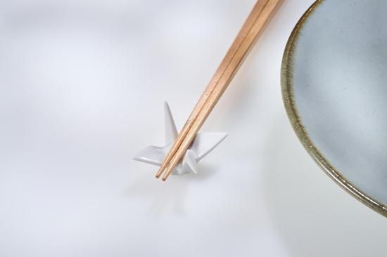 繊細な白磁で作られたこの箸置きは、伝統的な鶴の形をしています。