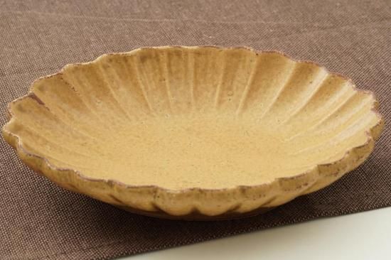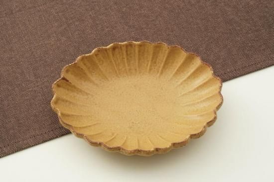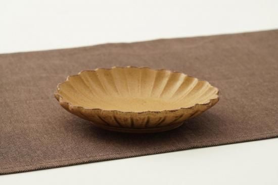 黄瀬戸生地で菊割が施された玉割型の小皿です。