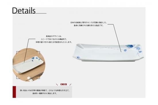 伝統と現代のデザインが織りなす『松幸 水引草 長角皿』は、長く愛用でき、心に残る食事のひとときを提供します。