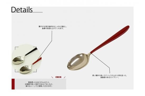 使い勝手の良いステンレスの上から漆を塗った、高級感のあるカトラリー。