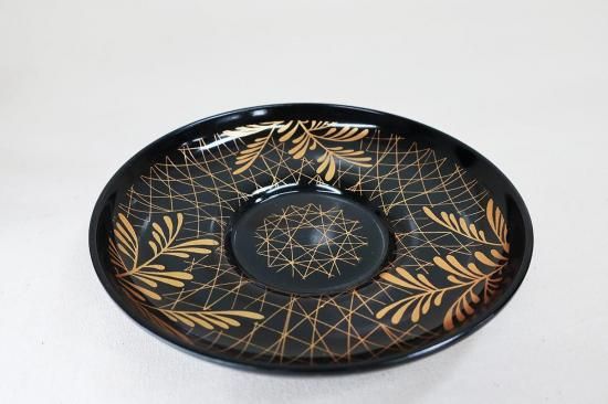 しっとりとした黒地に金が映える、モダンで上品な茶托。