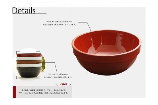 和え物などの副菜や朝食用のヨーグルト、あんみつなどのデザートカップとしてのご使用におススメな小さめのボウルです。