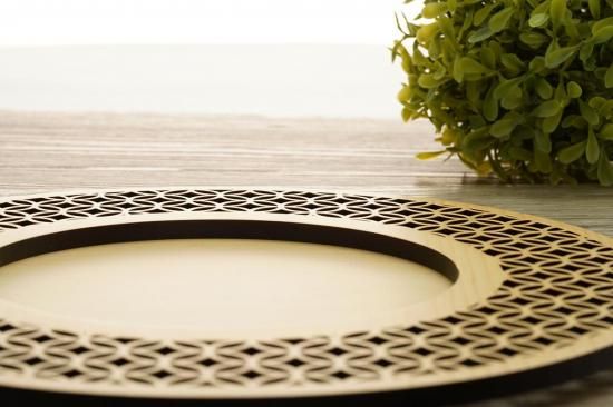 レーザー加工により細密な文様を施した『細密(さいみつ)シリーズ』のプレート。