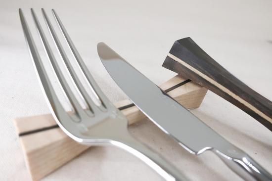中央のラインがアクセントの、木製カトラリーレストです。