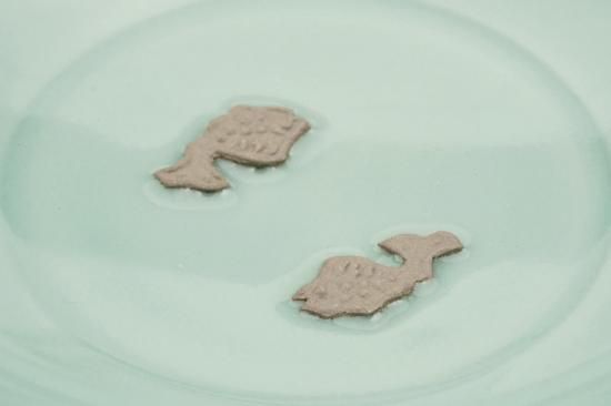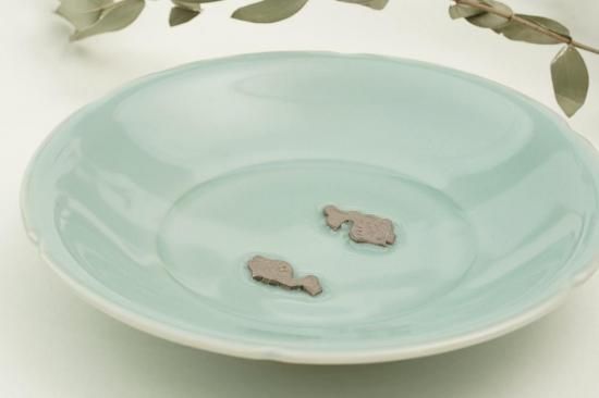 見込み中央には立体的な二匹の魚が佇んでおり、遊び心のあるお皿です。