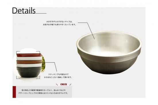 和え物などの副菜や朝食用のヨーグルト、あんみつなどのデザートカップとしてのご使用におススメな小さめのボウルです。