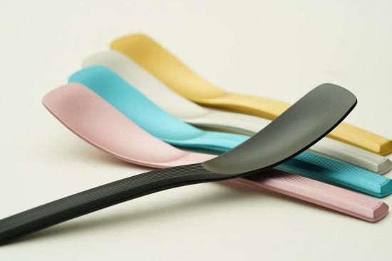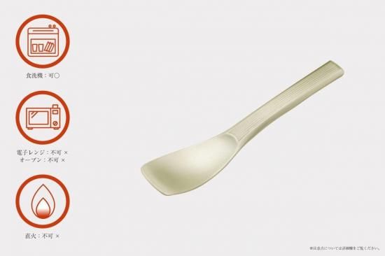 平らで突き出た先端は、口当たりなめらかにカップの底まですくいやすくなっています。
