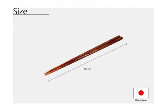 長さ23.5cmと丁度良い長さで、男女ともにお使いいただける、使い勝手の良い木箸。
