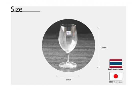 ワインだけでなくカクテルやビール等にも対応できるよう容量は大きめで、脚も少し短めになっています。