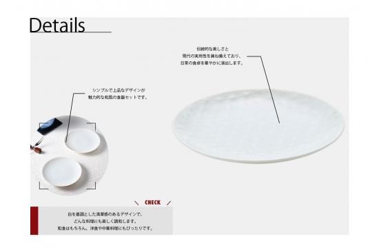 このセットは、白を基調とした清潔感のあるデザインで、どんな料理にも美しく調和します。