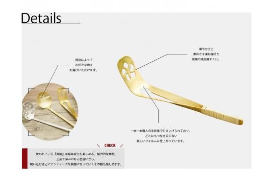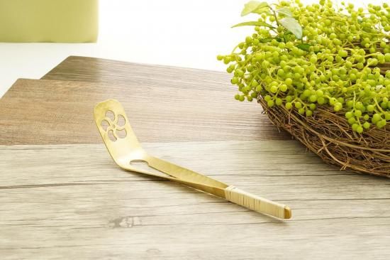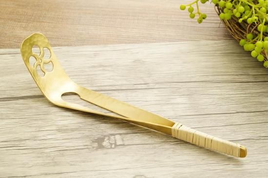 華やかさと素朴さを兼ね備えた真鍮の湯豆腐すくい。