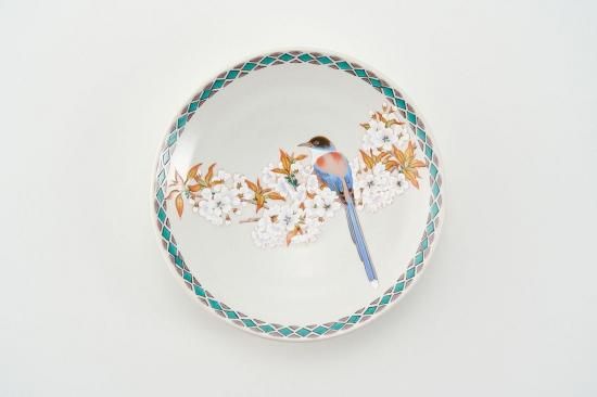 見事な筆遣いで描かれた花鳥が印象的な、九谷焼の小皿。
