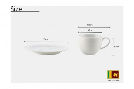 カップ 口径:約8.3cm、長径(取っ手含):約10.9cm、高さ:約6.5cm ソーサー 直径:約15cm、高さ:約1.8cm