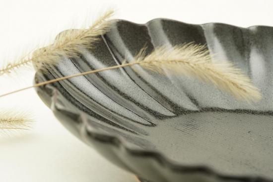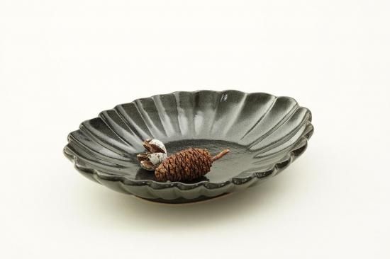 しっとりとした黒が荘厳さを醸し出す、菊割が施された玉割型の小皿です。