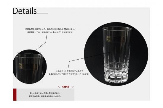 口部物理強化加工という、飲み口だけを強化する製法を使っているので、長期間使っても、使用中につく傷からグラスを守ります。