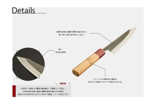 伝統的な技術と最新の鋼材を組み合わせ、使い易さと耐久性を両立しており、鋭く、切れ味も抜群。