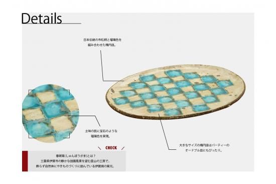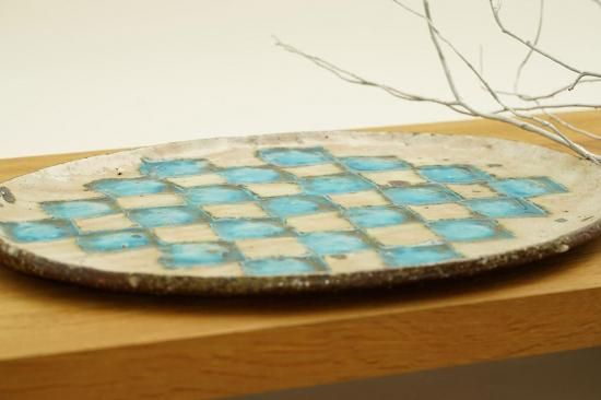 日本伝統の市松柄と瑠璃色を組み合わせた楕円皿。