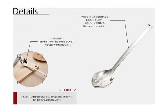 また、穴明の設計は、液体をすくう際に余分な汁を落としやすく、料理の盛り付け時に役立ちます。