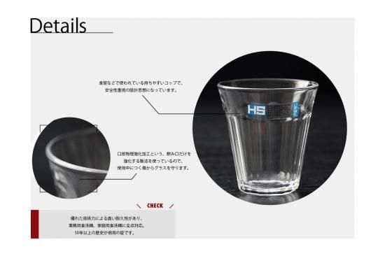 口部物理強化加工という、飲み口だけを強化する製法を使っているので、長期間使っても、使用中につく傷からグラスを守ります。
