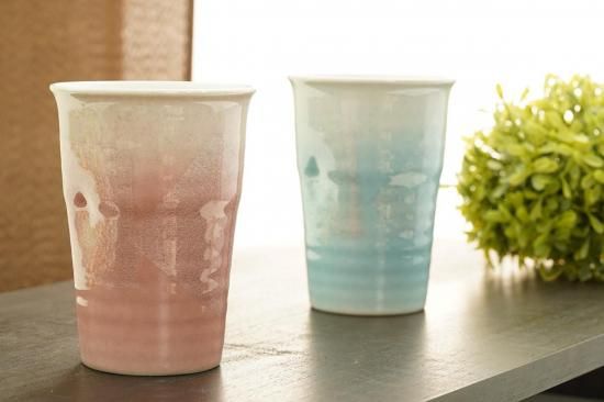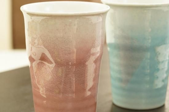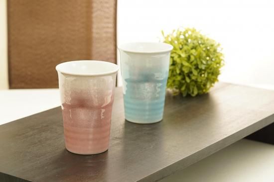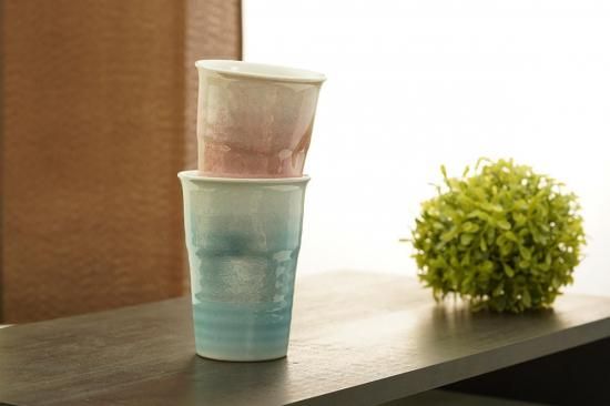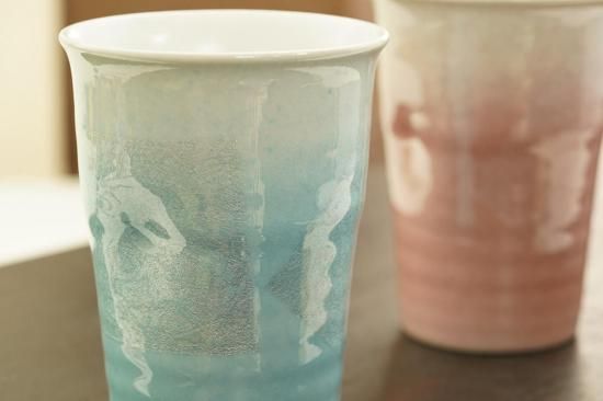 銀箔を張り付けて、その上から透明な釉薬や色釉薬をかけて焼き上げる技法『銀彩』を用いて作られた、上品なフリーカップ。