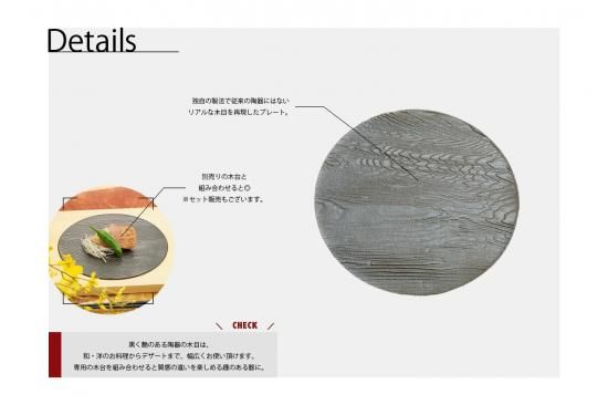 独自の製法で従来の陶器にはないリアルな木目を再現したプレート。