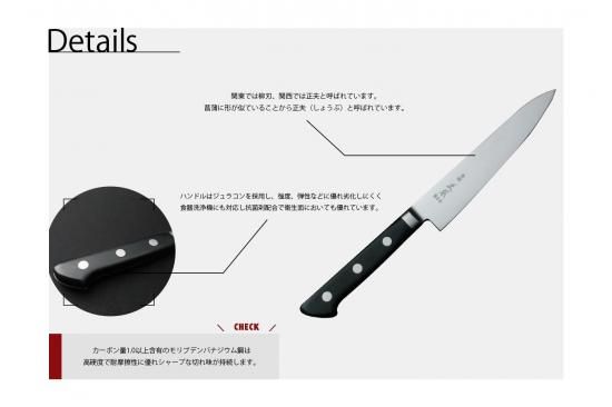 カーボン量1.0以上含有のモリブデンバナジウム鋼は高硬度で耐摩擦性に優れシャープな切れ味が持続します。