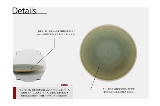 「オリッジ」は、窯変の効果を活かしたスタイリッシュなシリーズ。