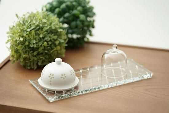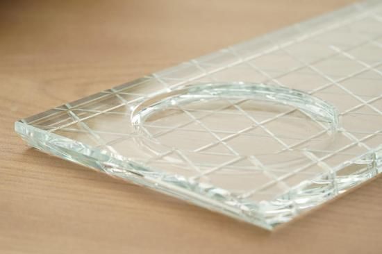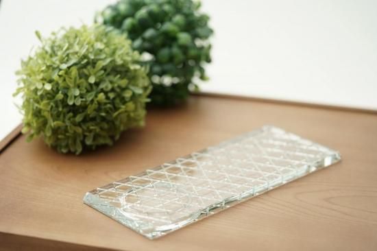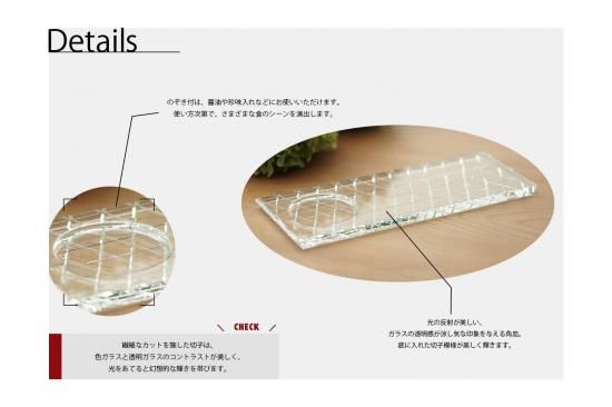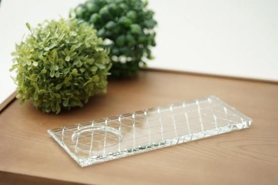 光の反射が美しい、ガラスの透明感が涼し気な印象を与える角皿。
