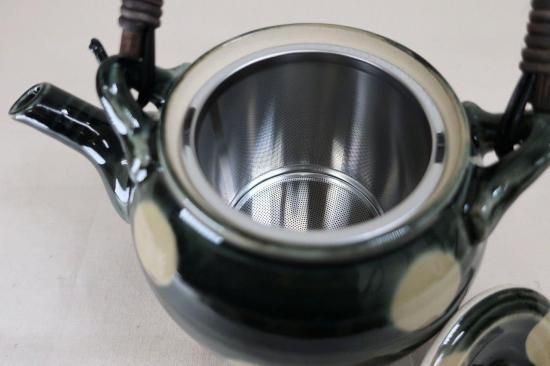 ステンレスの茶こしが付いた波佐見焼の土瓶。
