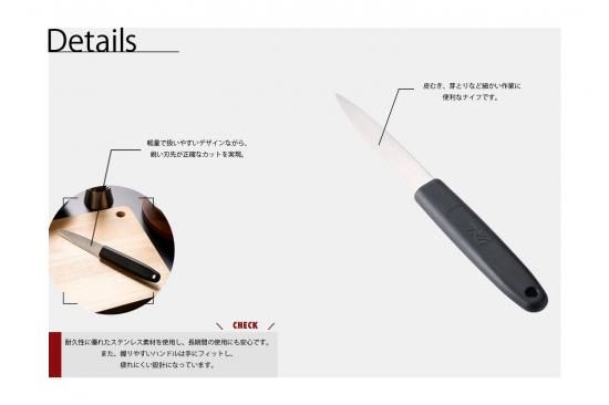 このTKGピーリングナイフは、家庭用から業務用まで幅広く活躍する高品質な一本。