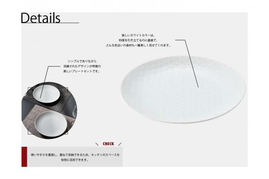 その美しいホワイトカラーは、料理を引き立てるのに最適で、どんな色合いの食材も一層美しく見せてくれます。