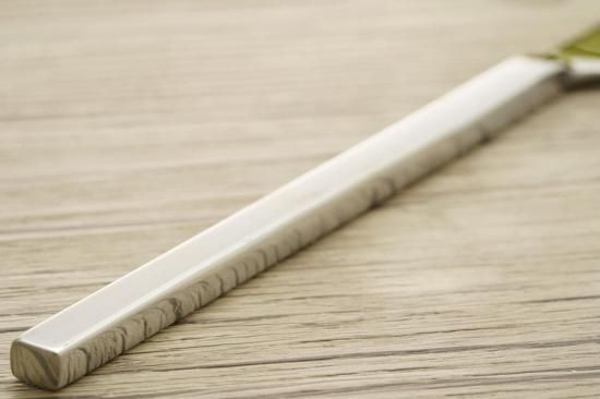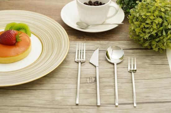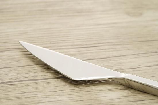 普及タイプの洋食器にかなり利用されている、鋼に13%以上のクロムを添加したステンレスを使用。