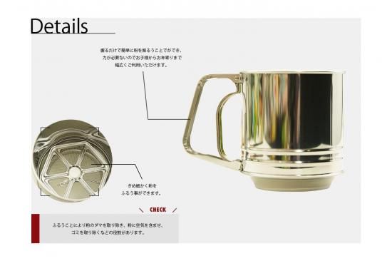 ふるうことにより粉のダマを取り除き、粉に空気を含ませ、ゴミを取り除くなどの役割があります。