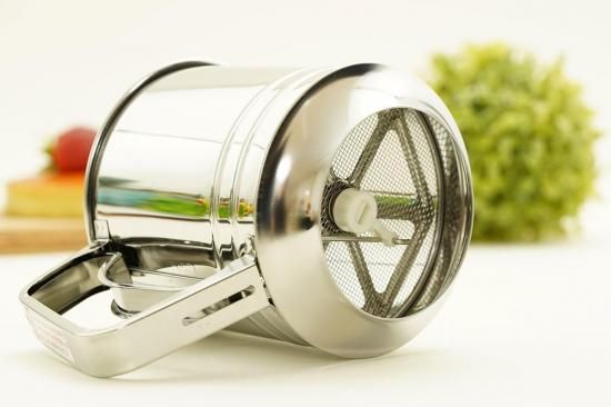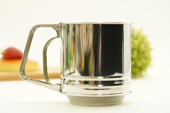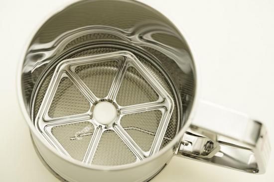 小麦粉などの粉類は、粉ふるいでふるってから使用します。