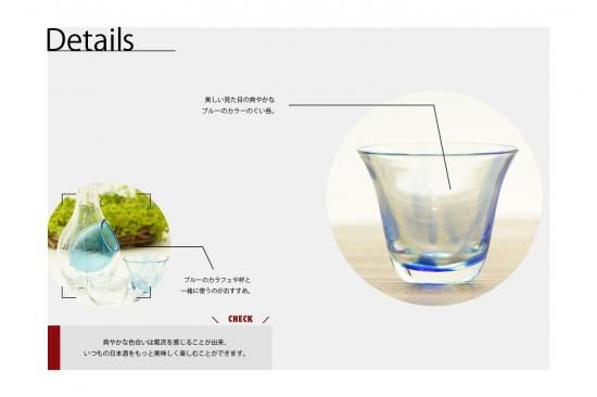 美味しい日本酒とひと手間かけたおつまみを用意して、のんびり寛ぐこのひと時を楽しみとされている方向けの、ずっと眺めていたいほど、美しい見た目の爽やかなブルーのカラーのぐい呑です。
