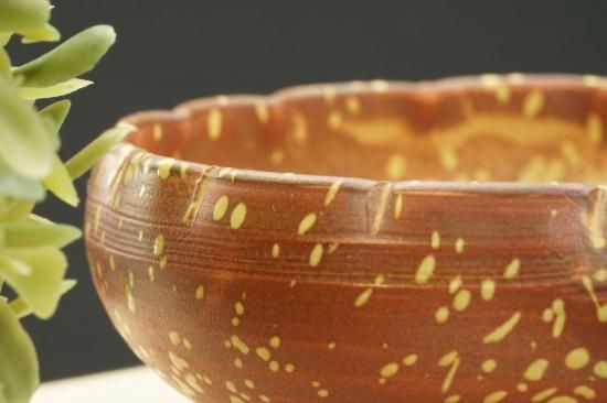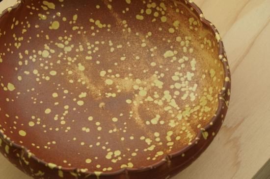 ひとつひとつが異なる伊羅保釉の黄,茶褐色の景色は個性的で、この落ち着いた色合い、質感が料理をよりいっそう引き立てます。