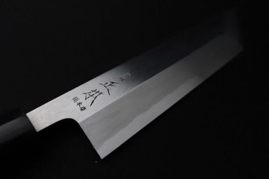 山陰地方特産の真砂蹉跌により厳選された鉄質を門外不出の秘伝で鍛えに鍛え上げた玉鋼にやわらかい庖丁鉄を被せたもので、切り口は鮮やかで鋭い切れ味、百有余年の歴史に支えられるソフトな使い心地、そして酷使に耐えられる耐久性は、他の追随を許さない逸品揃いと評価を受けております。