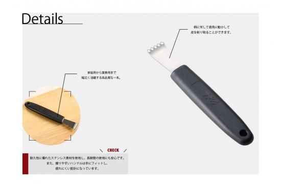 レモンなどの柑橘類の薄皮を削るのに便利な道具です。