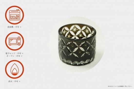 繊細なカットを施した切子は、色ガラスと透明ガラスのコントラストが美しく、光をあてると幻想的な輝きを帯びます。