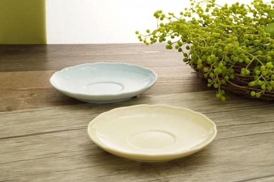 淡いブルーと温かみのあるクリームの2色展開で、どちらも幅広く料理と調和します。