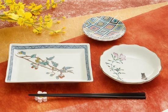 そんな九谷焼メーカーのひとつである『青郊窯』は自社で九谷焼の和絵具を開発、調合しており、他社製品にはないガラス質で透明感に溢れ、盛りが厚く優美で色鮮やかな九谷焼の色絵の特徴を損なうことのない商品のデザイン、製造を行っています。