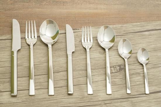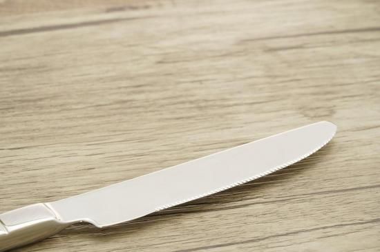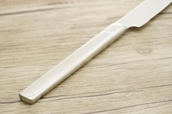 普及タイプの洋食器にかなり利用されている、鋼に13%以上のクロムを添加したステンレスを使用。