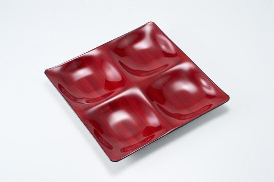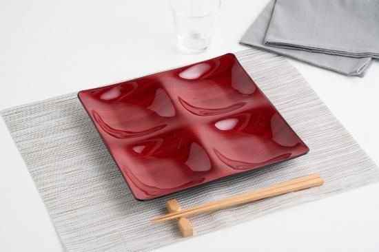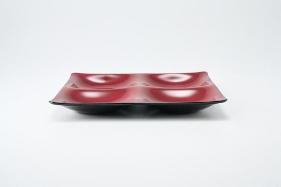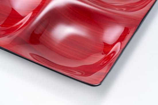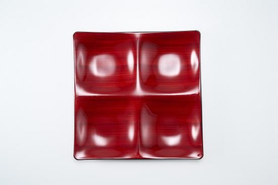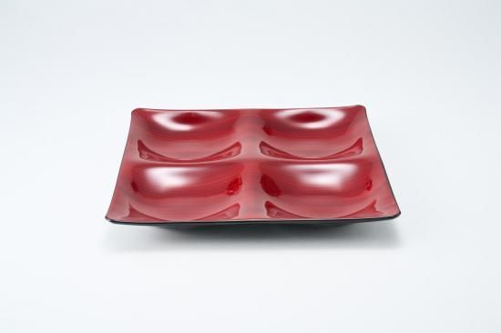 SALE 30%引き若泉漆器の『カリブプレート赤茶刷毛目』は、伝統と現代アートが見事に融合した独特のデザインが特徴です。
