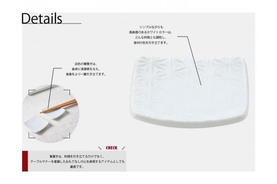 白色の箸置きは、食卓に清潔感を与え、食事をより一層引き立てます。