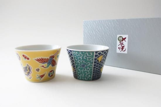 九谷焼の「五彩」が堪能できる杯のセットです。