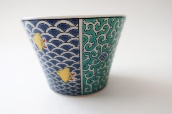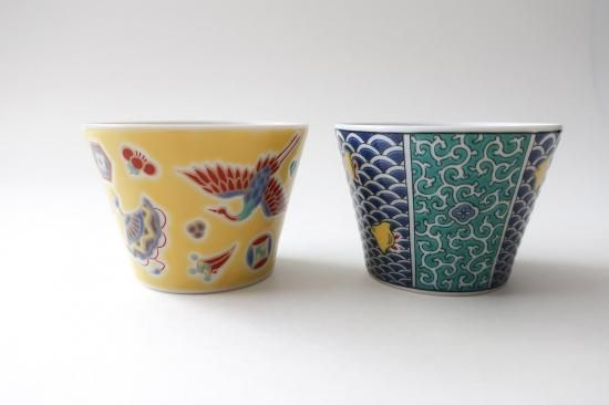 九谷焼 青郊窯 九谷ペア杯 宝尽し、青海波