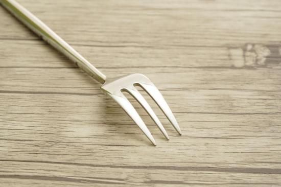 鋼に18%以上のクロムと10%以上のニッケルを添加したステンレスで洋食器に限らず、器物全般に現在最も多く使用されています。