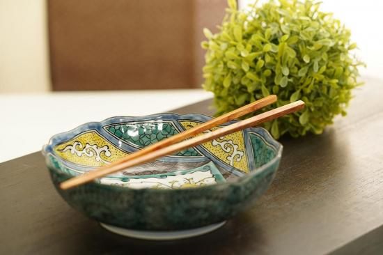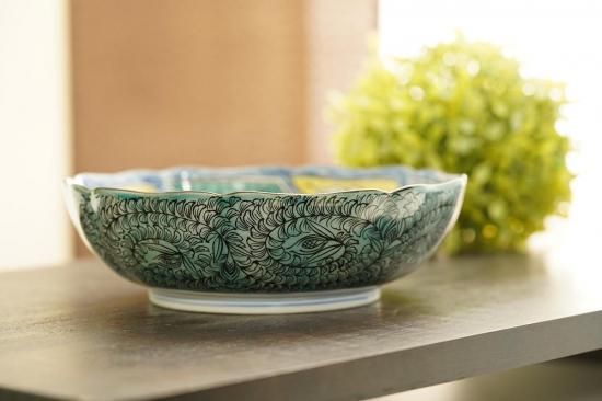 九谷焼の色彩の深みと、厚く盛り上げる着彩の風合いをお楽しみください。